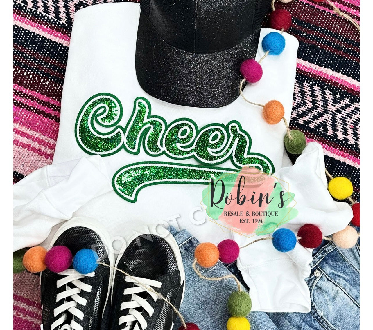 Green Cheer Sequin Patch Sweatshirt