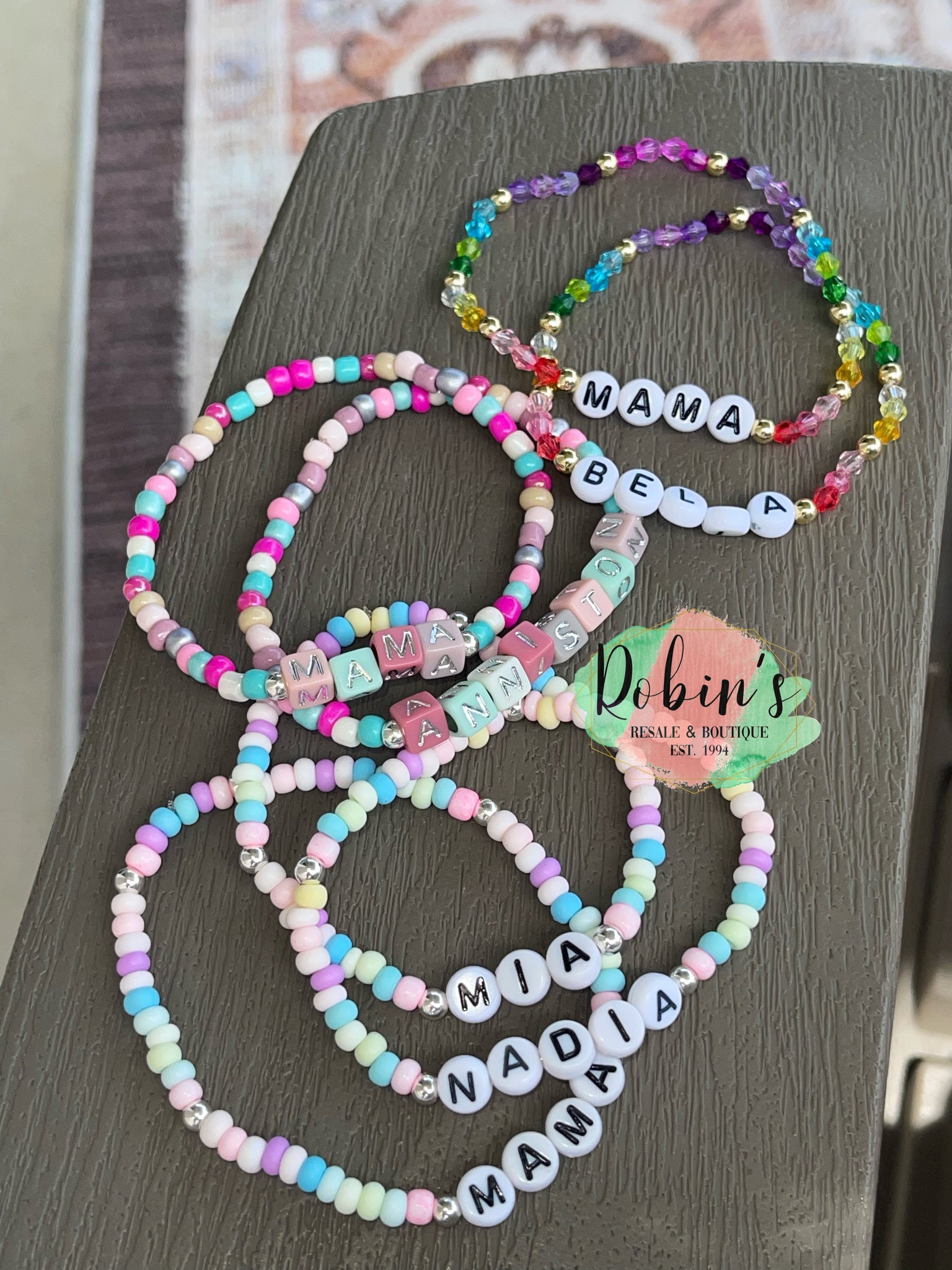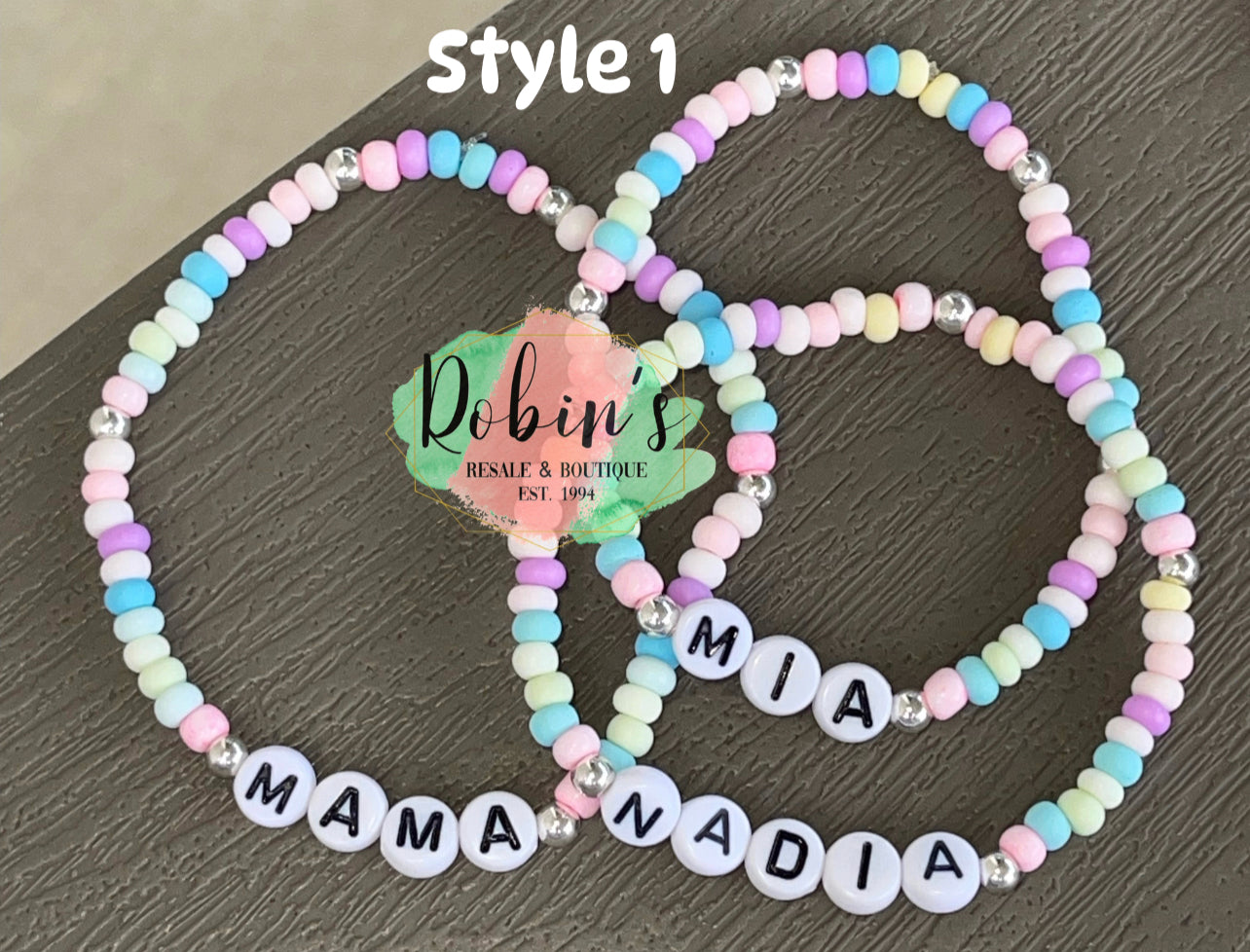 Perfect for the first day of school worries! Choose from three different options! Please double check spelling! Set includes ONE Mama bracelet along with one name Bracelet! You can add bracelets with different names for add on price of $4 each.